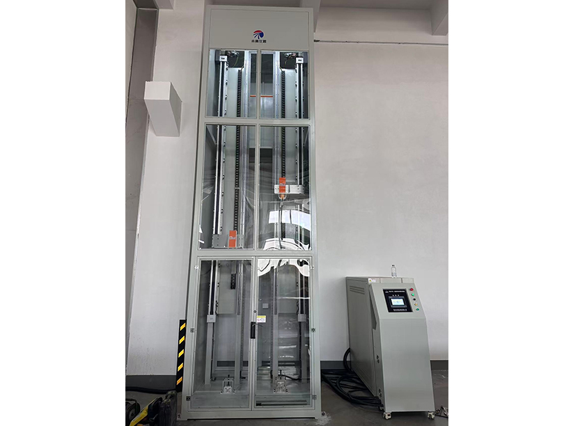 該試驗機根據(jù)GB/T 33594—2025開發(fā)的一款模擬液冷直流充電樁電纜在使用過程中移動,扭轉(zhuǎn)工況的測試設備。具體流程是取成品電纜長度不小于7m,電纜一端固定在裝置底部,并以約10倍電纜外徑的直徑成圈,另一端以適當?shù)姆绞焦潭ㄔ谘b置的移動端,移動端到底部距離約為1m。移動端以0.2m/s的速度上下直線移動,最大行程為4m。移動端向上移動的同時逆著底部電纜卷曲的方向旋轉(zhuǎn),移動端向下移動時旋轉(zhuǎn)方向與向上移動時相反,旋轉(zhuǎn)速度為5s/圈。移動端上下往復一次為1個循環(huán)。試驗過程中導體施加0.1A監(jiān)視電流。除用戶或制造商另有規(guī)定外,推薦試驗進行5000個循環(huán)。在整個試驗中試樣不應發(fā)生導體斷裂、試驗后檢測電纜表面,不應有開裂以及電纜扭結(jié)、鼓包現(xiàn)象。